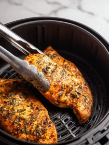 Step 4: Place the chicken breasts in the air fryer basket, skin side down if applicable, ensuring they aren’t touching.