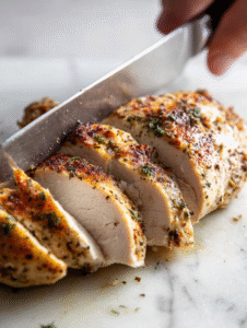 Step 7: Let the chicken rest for 5 minutes before slicing. Resting helps the juices redistribute, keeping the meat moist.