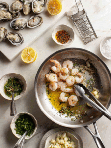 1. Gather all your seafood ingredients first—fresh oysters, shrimp, and scallops work well together. Keep everything chilled until you’re ready to cook, to maintain freshness and safety.
