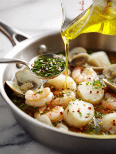 • Olive Oil: Use good-quality extra virgin olive oil for its fruity, peppery notes. It’s the base that simmering garlic and citrus swim in—rich, fragrant, and essential.