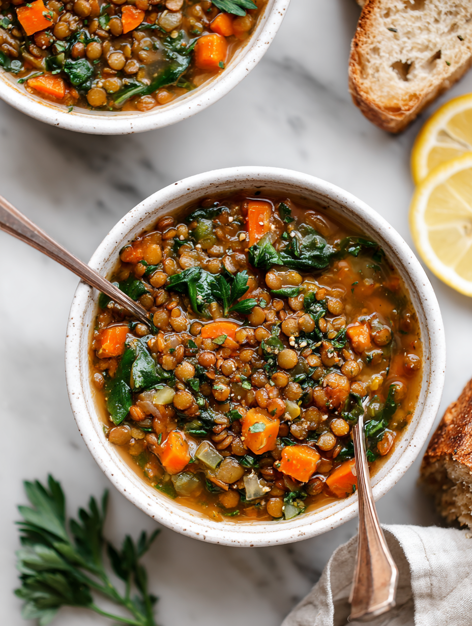 • Lentils: Red lentils cook faster and break down more easily, giving a softer texture; stick to brown or green if you prefer more bite.