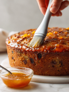 11. Once cooled, brush the top with warmed apricot jam for a shiny finish, then wrap tightly in foil and let the flavors meld for at least 24 hours before serving.