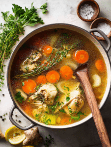6. Ladle the hot soup into bowls, garnish with chopped parsley and thyme if using, and serve warm. Enjoy the soothing warmth and clear, flavorful broth that’s perfect for nourishing your body and soul.