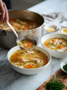 This chicken soup started as a way to soothe a stubborn cold, but it’s become my go-to for quiet mornings. It’s rooted in the idea that sometimes the simplest ingredients, simmered long and slow, hold the most comfort. I like to think of it as a small ritual—something that quietly restores when life feels a little chaotic.