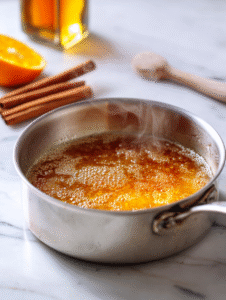 Step 6: While roasting, prepare the orange glaze: simmer fresh orange juice with honey, cinnamon, and a splash of sherry.