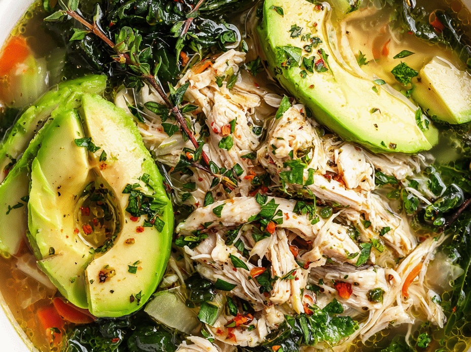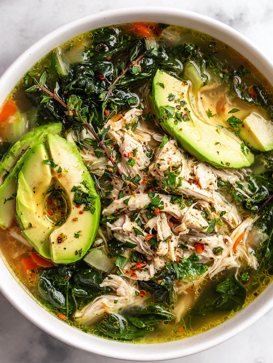 • Chicken breast or thighs: Lean protein that makes the soup filling and satisfying without carbs. Swap with turkey for a different twist.