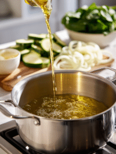 Step 2: Heat the stockpot over medium heat, about 160°C (320°F). Add a splash of oil and let it shimmer.