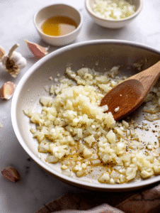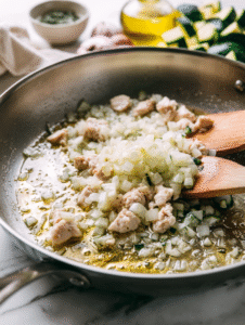 Step 3: Sauté diced onion and garlic until fragrant and translucent, about 3-4 minutes.