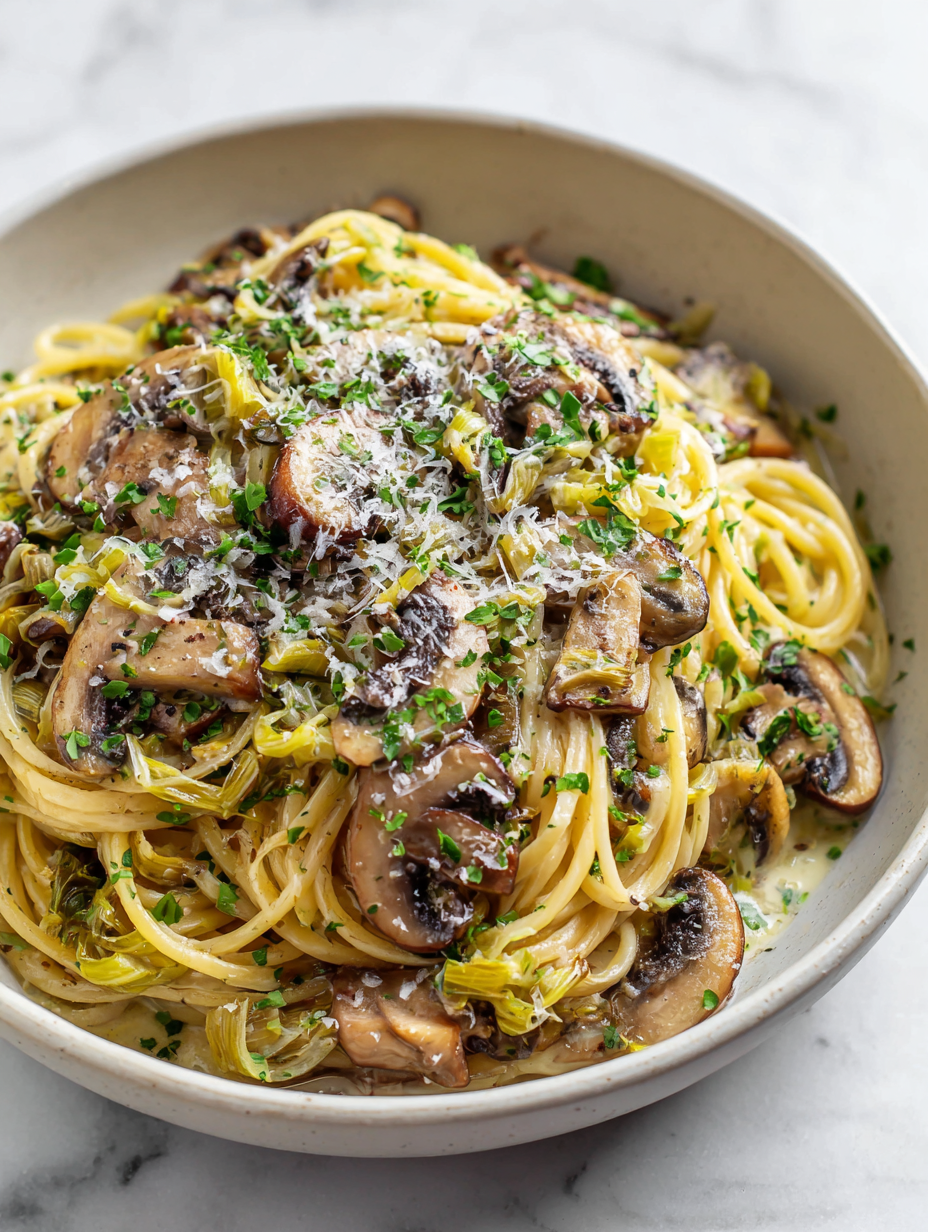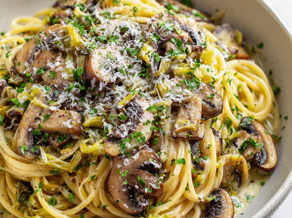 • I first made this pasta on a rainy Sunday when I had a handful of leeks and mushrooms that needed using. The smell of caramelized leeks and earthy mushrooms simmering together instantly took me back to my childhood kitchen, where my mom would throw together simple, honest meals after long days. There’s a quiet magic in transforming humble ingredients into something that feels indulgent without fuss.