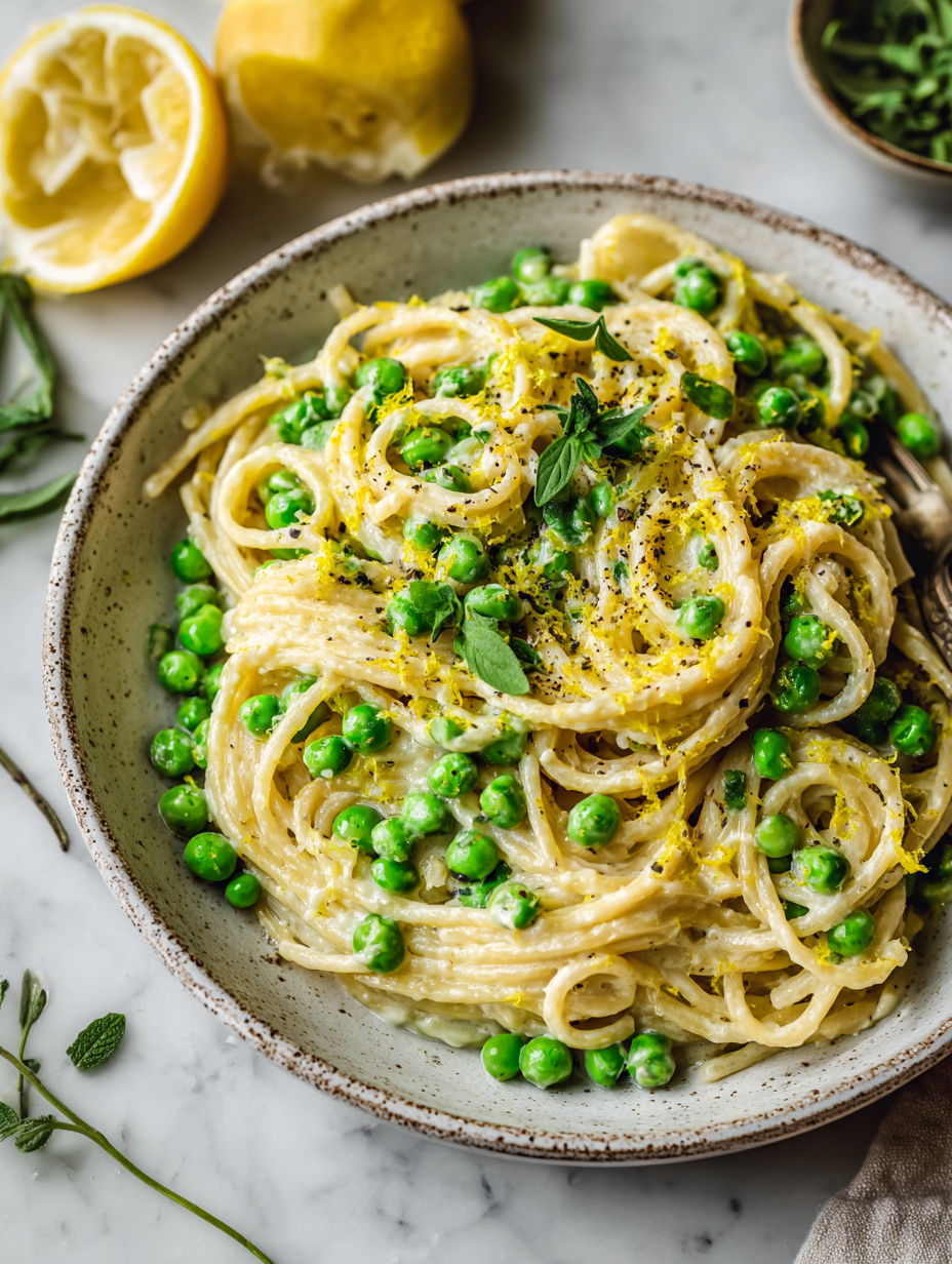- Plate immediately. Garnish with extra lemon zest and a drizzle of olive oil for shine. Serve hot, savoring the bright, fresh aroma of lemon and peas.