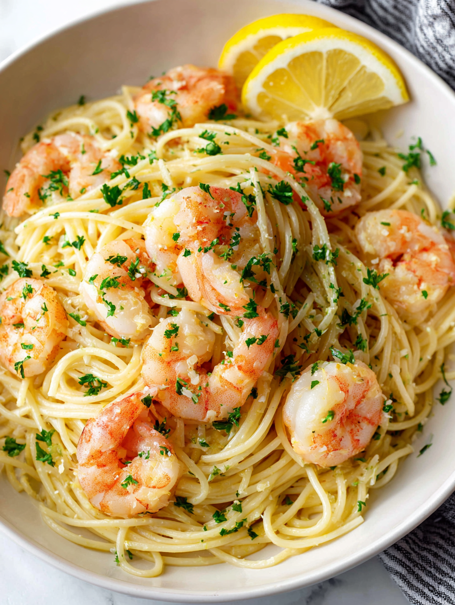 Reheat leftovers gently in a skillet with a splash of water or oil. Avoid microwaving to prevent rubbery shrimp and dry pasta.