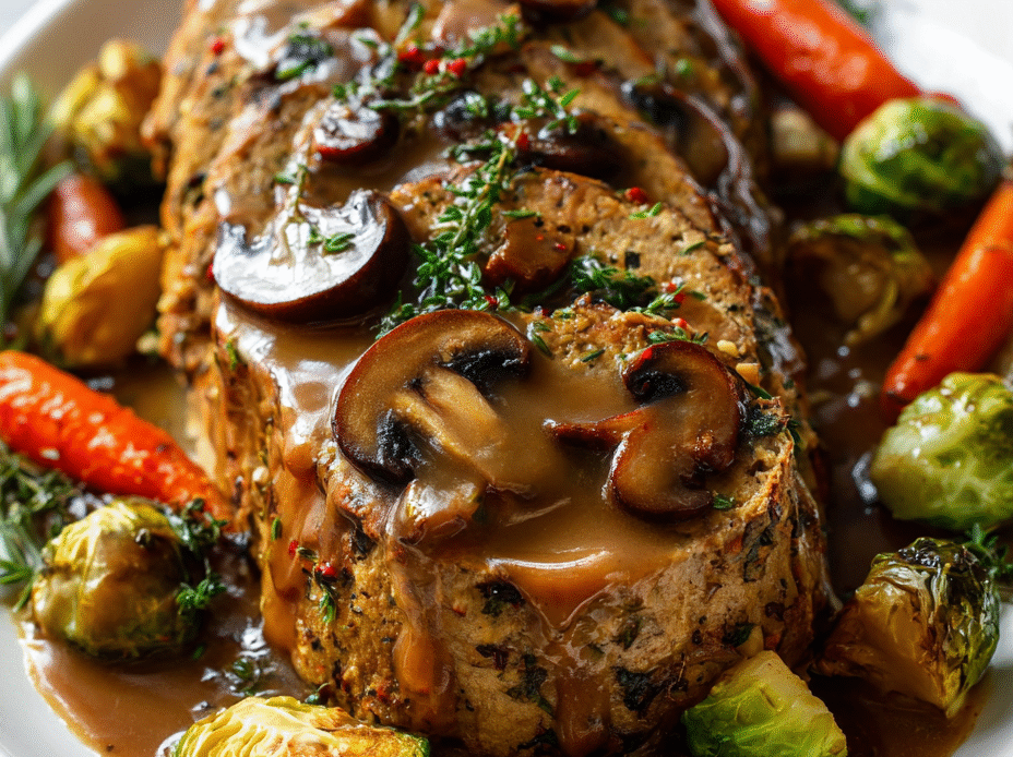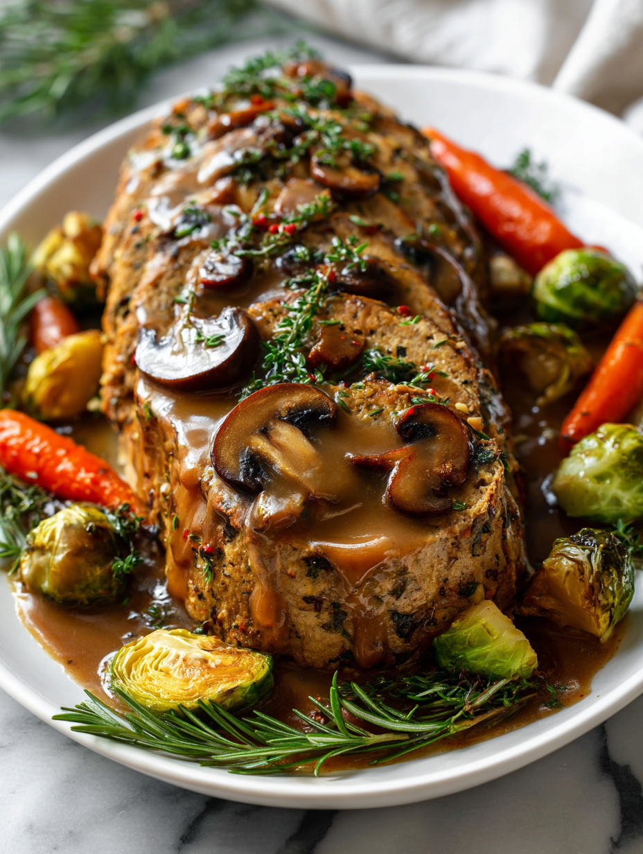 Vegetarian Holiday Veggie Roast with Mushroom Gravy
