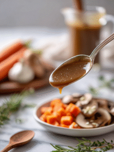 - Vegetable broth: Homemade is best, but store-bought works. Look for a rich, concentrated kind.: It forms the flavorful base of the gravy and keeps the dish moist.